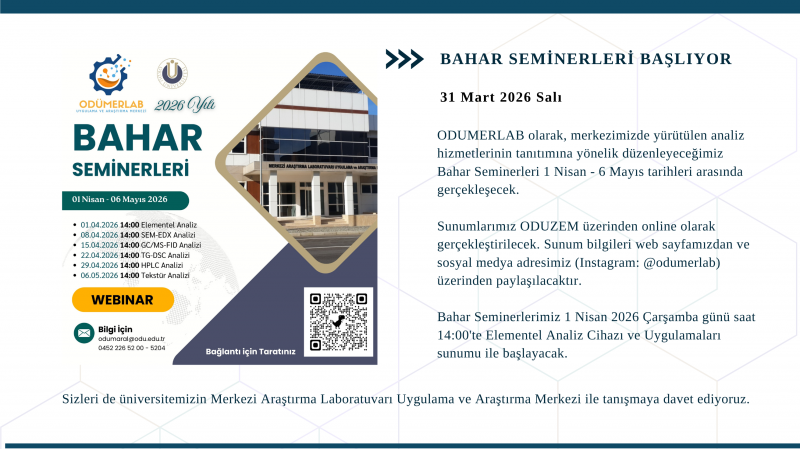 Bahar Seminerleri 4. Sunum: TG-DSC Cihazı ve Uygulamaları 22 Nisan Çarşamba Saat 14:00'te