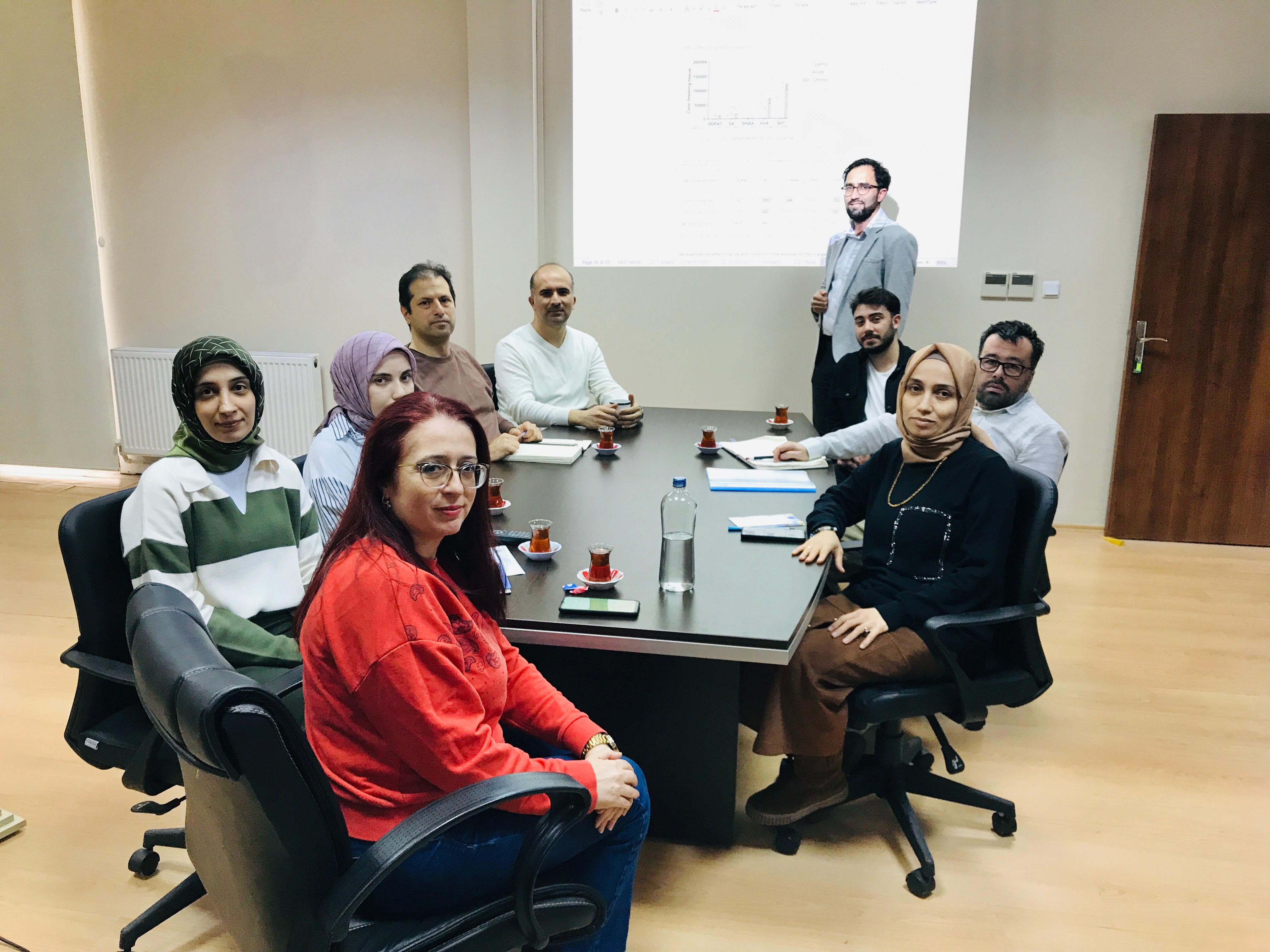 Öğr. Gör. Dr. Fatih ŞAL "Nikotine Bağlı Kronik Tolerans Gelişimi ve Yoksunluk Belirtilerinin Planaria Modeli ile İncelenmesi" konulu sunumunda Dopamin ve Serotonin gibi nörotransmiterlerin ve bunlarla ilgili metabolitlerin HPLC ile analizi hakkında bilgilendirmelerde bulundu.